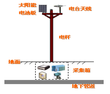 采集站由安装于管线上压力变送器、数据采集箱(包括采集模块、GPS时间采集模块、数传电台)、太阳能电池板、蓄电池和电杆组成。如下图所示: